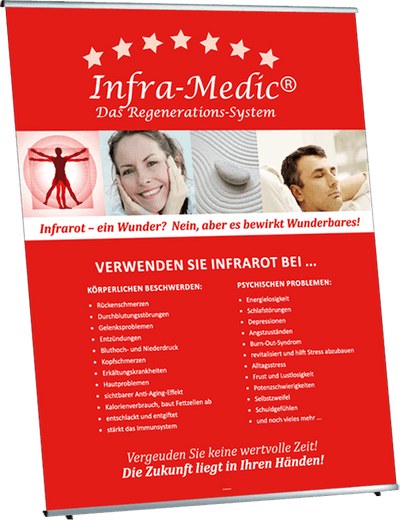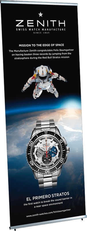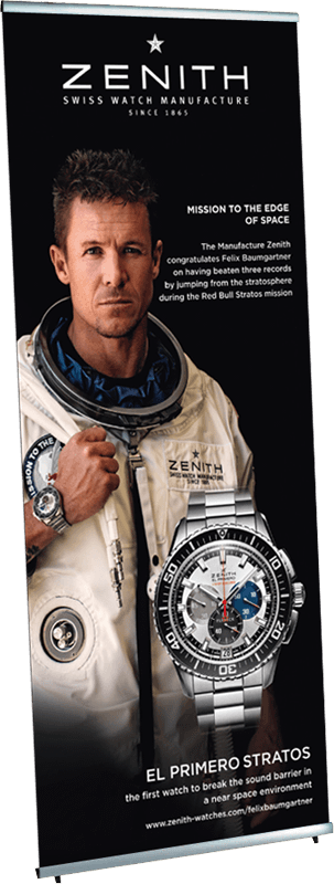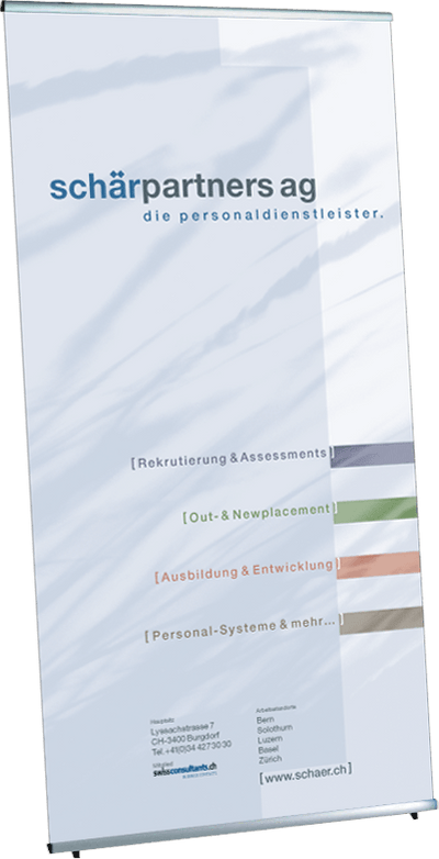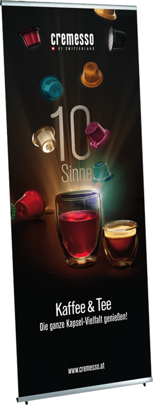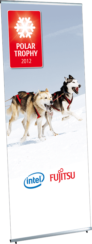 Very light and easy to assemble fabric display made of silver anodized aluminum components, the fabric images are simply attached with clamping rails, so this display is also very suitable for frequent image changes.