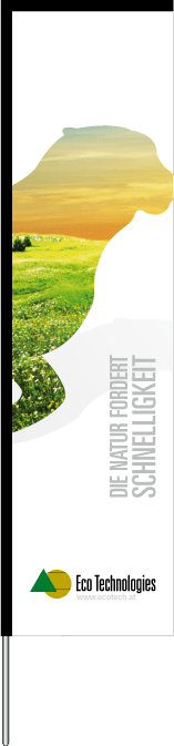 Speziell für den Digital-Stoffdruck sind fast alle unsere Stoff-Qualitäten von einem deutschen Hersteller und Öko-Tex zertifiziert. Wir haben aber auch sehr spezielle Bedruckstoffe im Programm, die aus PET-Flaschen hergestellt werden, z.B. "Öko-Banner light", ein Vlies-ähnliches Material, welches wir für Startnummern verwenden und "Öko-Banner Mesh", ein Material, welches für Endlos-Banner verwendet wird. Aus dem Fahnenstoff "Polygreen", der ebenfalls aus PET-Flaschen hergestellt wird, können wir Fahnen, Beachflags, Transparente und Dekofahnen produzieren. Auch bei den Druckfarben setzen wir umweltfreundliche, wasserbasierende Textiltinten ein. Besonders stolz sind wir auf die Eigenproduktion unserer "Premium" Beachflag-Gestänge, diese produzieren wir kmpl. mit dem gesamten Zubehör in Salzburg und werden nicht wie die meisten Mitbewerber-Produkte aus dem fernen China importiert.